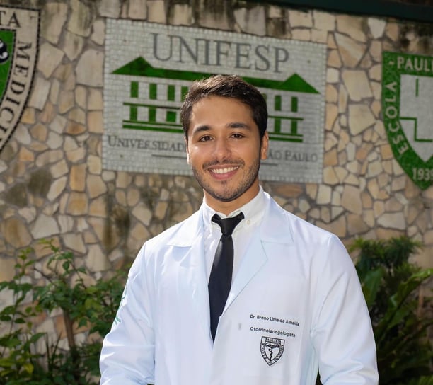 Sou o Dr. Breno Almeida, otorrinolaringologista, graduado pela Faculdade de Medicina da Bahia da Universidade Federal da Bahia (UFBA), com especialização em Otorrino pela Escola Paulista de Medicina – Universidade Federal de São Paulo (EPM–UNIFESP), onde atualmente também integro uma linha de pesquisa dedicada à Surdez Súbita.